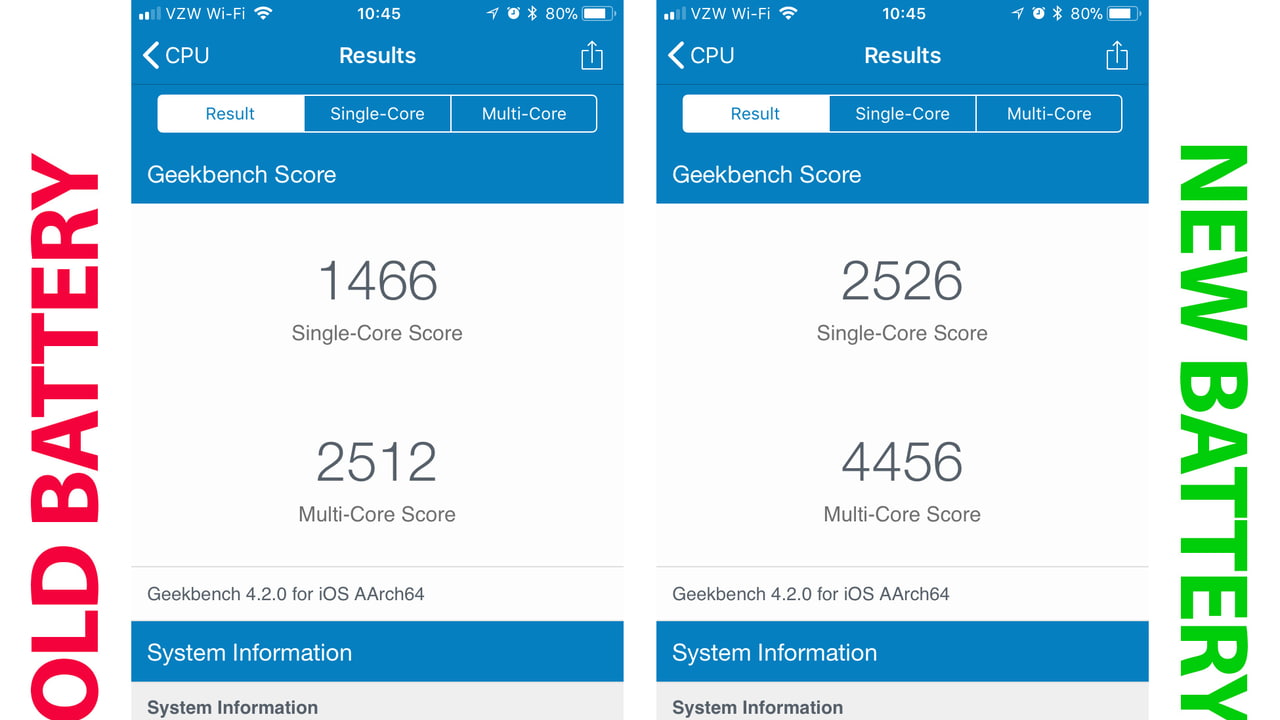 Mă miram de ce al meu iPhone 6+ merge atât de prost în ultima vreme. O fi asta cauza? Citiți mai jos. Cică dacă sistemul detectează o baterie uzată, procesorul este automat underclocked pentru a consuma mai puțin. Schimbarea bateriei cu una nouă reface și performanțele telefonului.